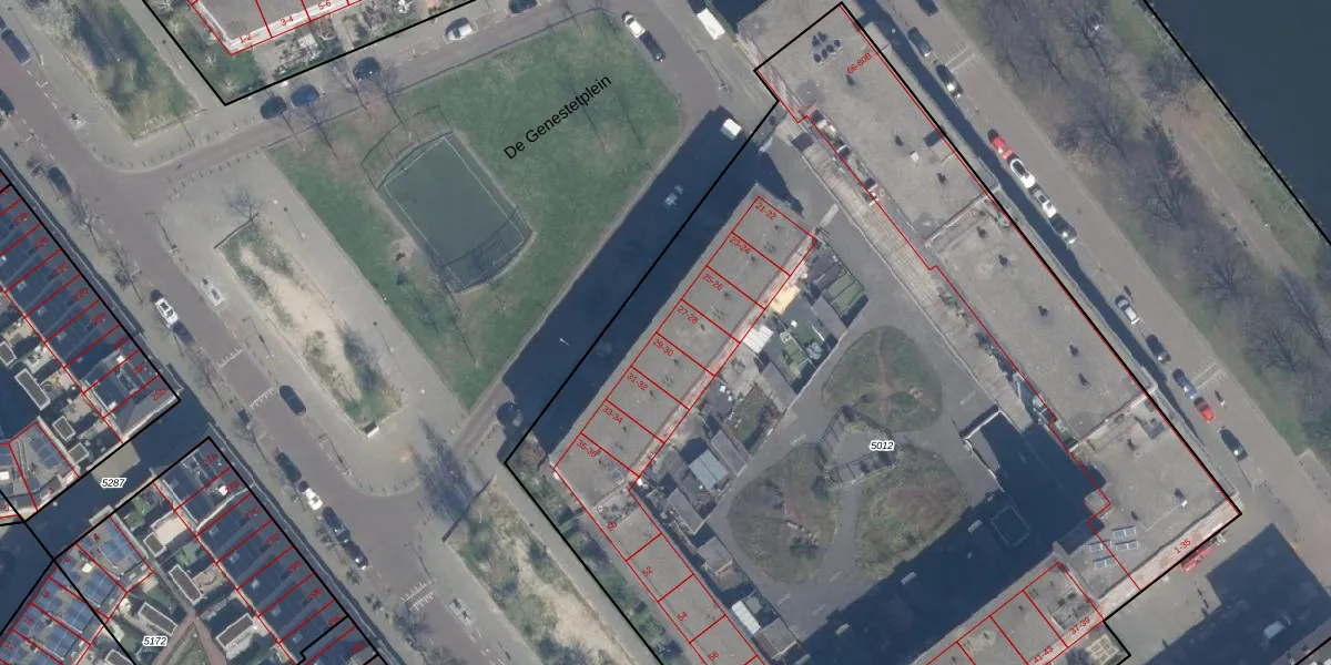 De Genestetplein 28 is gelegen op kadastraal perceel RTD10Z5012. Deze kadastrale aanduiding is uniek en wordt gebruikt door het Kadaster om eigendomsrechten en andere zakelijke rechten vast te leggen. Het perceel maakt onderdeel uit van de kadastrale gemeente Rotterdam.