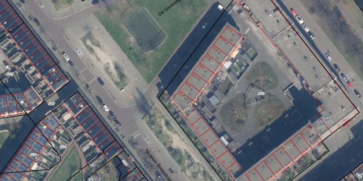 De Genestetplein 34 is gelegen op kadastraal perceel RTD10Z5012. Deze kadastrale aanduiding is uniek en wordt gebruikt door het Kadaster om eigendomsrechten en andere zakelijke rechten vast te leggen. Het perceel maakt onderdeel uit van de kadastrale gemeente Rotterdam.