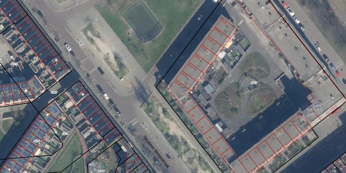 De Genestetplein 36 is gelegen op kadastraal perceel RTD10Z5012. Deze kadastrale aanduiding is uniek en wordt gebruikt door het Kadaster om eigendomsrechten en andere zakelijke rechten vast te leggen. Het perceel maakt onderdeel uit van de kadastrale gemeente Rotterdam.