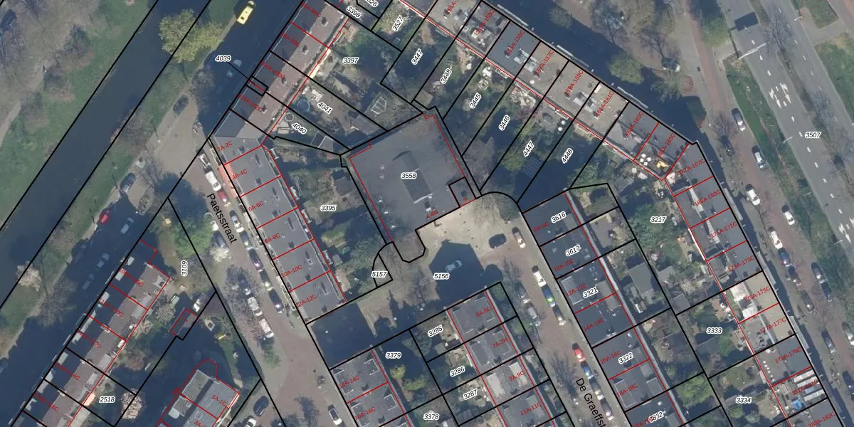 Het perceel waarop De Graeffstraat 4-F staat heeft een oppervlakte van 606 m². Dit is een groot perceel. De perceeloppervlakte wordt geregistreerd door het Kadaster. Gedetailleerde informatie over de maten van dit perceel kunt u vinden in het rapport Kadastrale kaart met maatvoering van De Graeffstraat 4-F.