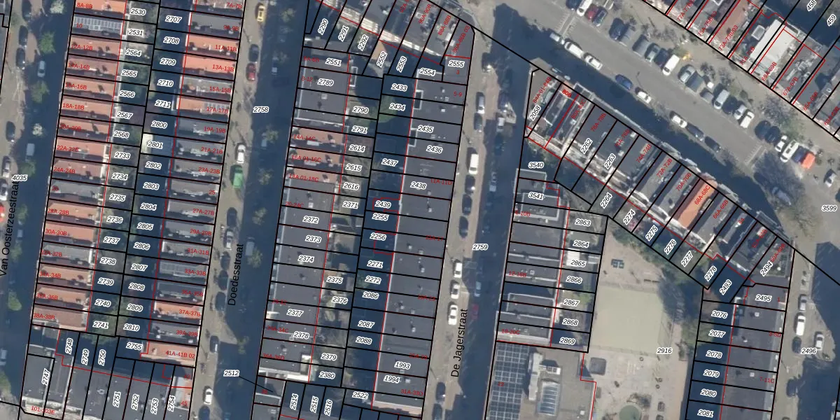 Het perceel waarop De Jagerstraat 15-C staat heeft een oppervlakte van 92 m². Dit is een klein perceel. De perceeloppervlakte wordt geregistreerd door het Kadaster. Gedetailleerde informatie over de maten van dit perceel kunt u vinden in het rapport Kadastrale kaart met maatvoering van De Jagerstraat 15-C.
