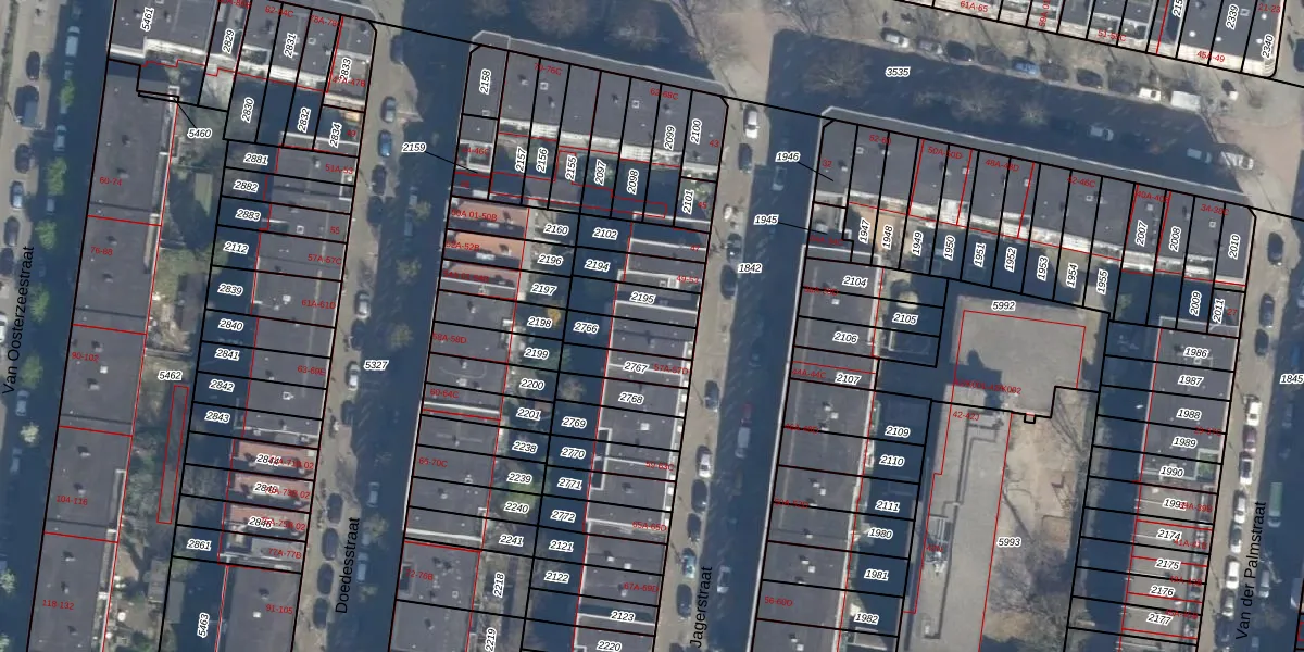 Het perceel waarop De Jagerstraat 51-B staat heeft een oppervlakte van 97 m². Dit is een klein perceel. De perceeloppervlakte wordt geregistreerd door het Kadaster. Gedetailleerde informatie over de maten van dit perceel kunt u vinden in het rapport Kadastrale kaart met maatvoering van De Jagerstraat 51-B.