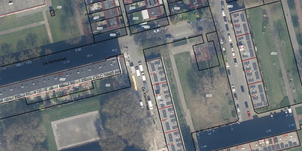 Het perceel waarop De Klerkstraat 14 staat heeft een oppervlakte van 674 m². Dit is een groot perceel. De perceeloppervlakte wordt geregistreerd door het Kadaster. Gedetailleerde informatie over de maten van dit perceel kunt u vinden in het rapport Kadastrale kaart met maatvoering van De Klerkstraat 14.