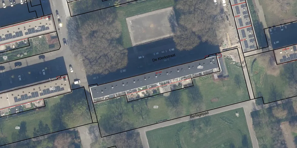 Het perceel waarop De Klerkstraat 160 staat heeft een oppervlakte van 1190 m². Dit is een zeer groot perceel. De perceeloppervlakte wordt geregistreerd door het Kadaster. Gedetailleerde informatie over de maten van dit perceel kunt u vinden in het rapport Kadastrale kaart met maatvoering van De Klerkstraat 160.
