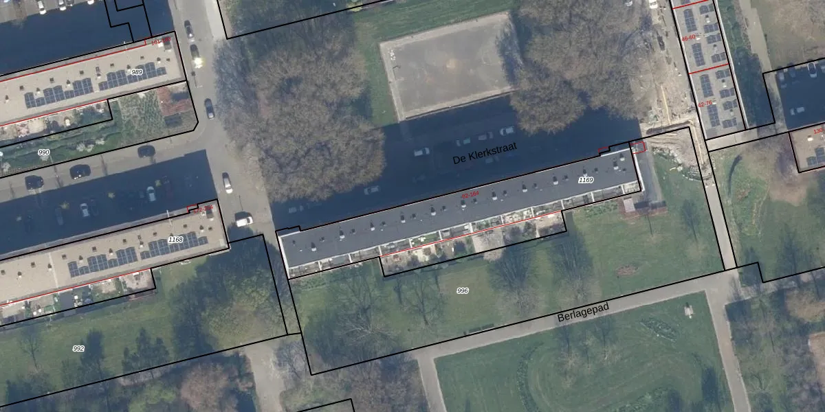 De Klerkstraat 162 is gelegen op kadastraal perceel KLG00K1169. Deze kadastrale aanduiding is uniek en wordt gebruikt door het Kadaster om eigendomsrechten en andere zakelijke rechten vast te leggen. Het perceel maakt onderdeel uit van de kadastrale gemeente Kralingen.