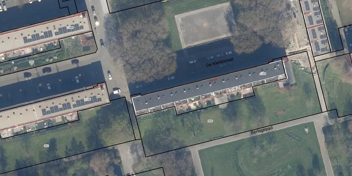 Het perceel waarop De Klerkstraat 164 staat heeft een oppervlakte van 1190 m². Dit is een zeer groot perceel. De perceeloppervlakte wordt geregistreerd door het Kadaster. Gedetailleerde informatie over de maten van dit perceel kunt u vinden in het rapport Kadastrale kaart met maatvoering van De Klerkstraat 164.