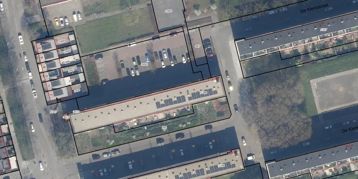 De Klerkstraat 173 is gelegen op kadastraal perceel KLG00K989. Deze kadastrale aanduiding is uniek en wordt gebruikt door het Kadaster om eigendomsrechten en andere zakelijke rechten vast te leggen. Het perceel maakt onderdeel uit van de kadastrale gemeente Kralingen.