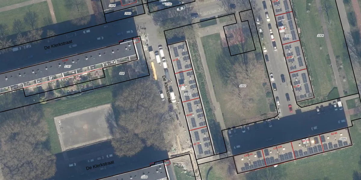 Het perceel waarop De Klerkstraat 44 staat heeft een oppervlakte van 674 m². Dit is een groot perceel. De perceeloppervlakte wordt geregistreerd door het Kadaster. Gedetailleerde informatie over de maten van dit perceel kunt u vinden in het rapport Kadastrale kaart met maatvoering van De Klerkstraat 44.
