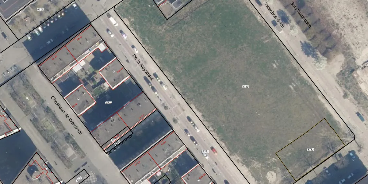 Het adres is gelegen op perceel 8780 in de sectie D en de kadastrale gemeente Charlois. De kadastrale aanduiding is aldus CLS00-D-8780. De oppervlakte van het perceel is 6731 m². Dat is groter dan gemiddeld in Charlois, waar de gemiddelde perceeloppervlakte op 1147,69 m² ligt. De grootste perceeloppervlakte in de kadastrale gemeente is 1,09 km². De kleinste oppervlakte bedraagt 0 m². Er zijn 91 adressen aanwezig op het perceel. De laatste wijziging in het de Basisregistratie Kadaster (BRK) was op 02-01-2026.