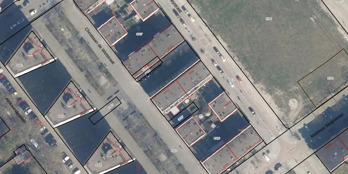 Het adres ligt op het perceel CLS00-D-8306, dat zich in de kadastrale gemeente Charlois bevindt. De oppervlakte van het perceel is 2050 m². Dat is groter dan gemiddeld in Charlois, waar de gemiddelde perceeloppervlakte op 1147,69 m² ligt. De grootste perceeloppervlakte in de kadastrale gemeente is 1,09 km². De kleinste oppervlakte bedraagt 0 m². Op het perceel liggen in totaal 36 adressen. In de Basisregistratie Kadaster (BRK) werden de grenzen van het perceel geregistreerd op 10-04-2003.