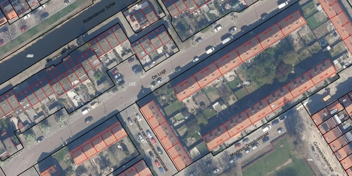 De Lugt 59-B is gelegen op kadastraal perceel OVS00C4218. Deze kadastrale aanduiding is uniek en wordt gebruikt door het Kadaster om eigendomsrechten en andere zakelijke rechten vast te leggen. Het perceel maakt onderdeel uit van de kadastrale gemeente Overschie.