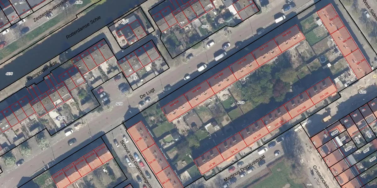 De Lugt 63-A is gelegen op kadastraal perceel OVS00C4218. Deze kadastrale aanduiding is uniek en wordt gebruikt door het Kadaster om eigendomsrechten en andere zakelijke rechten vast te leggen. Het perceel maakt onderdeel uit van de kadastrale gemeente Overschie.