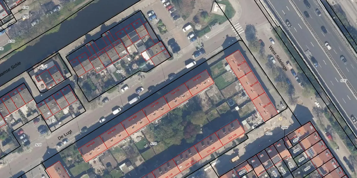 De Lugt 77-A is gelegen op kadastraal perceel OVS00C4218. Deze kadastrale aanduiding is uniek en wordt gebruikt door het Kadaster om eigendomsrechten en andere zakelijke rechten vast te leggen. Het perceel maakt onderdeel uit van de kadastrale gemeente Overschie.