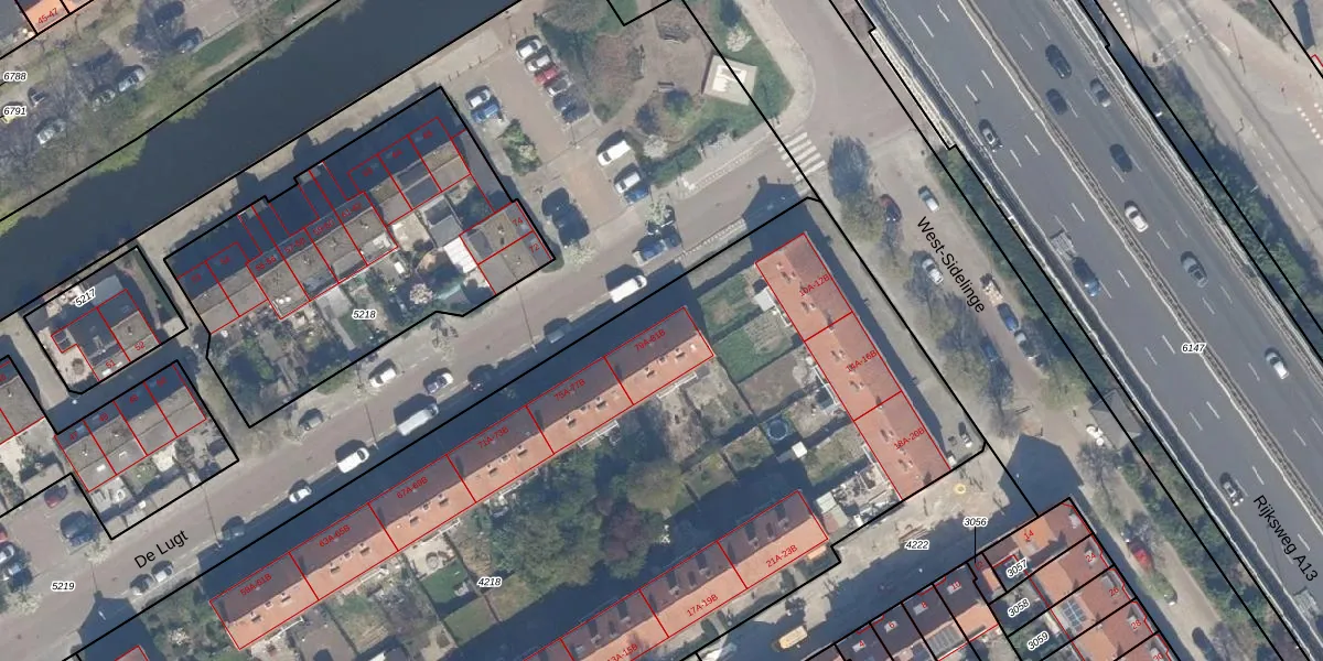 Het perceel waarop De Lugt 81-A staat heeft een oppervlakte van 6418 m². Dit is een zeer groot perceel. De perceeloppervlakte wordt geregistreerd door het Kadaster. Gedetailleerde informatie over de maten van dit perceel kunt u vinden in het rapport Kadastrale kaart met maatvoering van De Lugt 81-A.