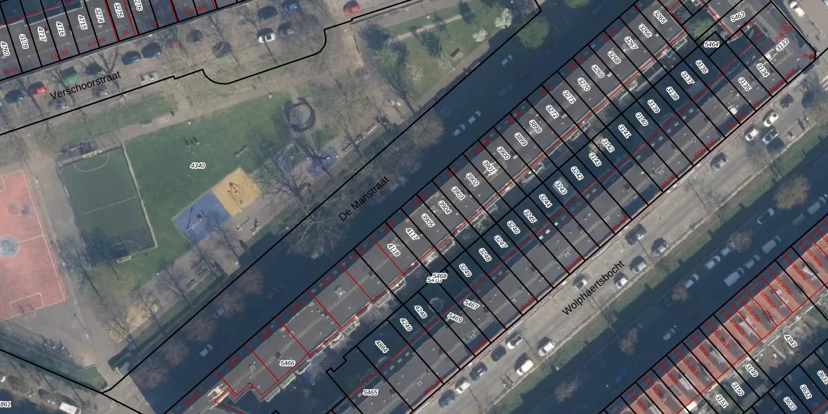 Het perceel waarop De Manstraat 48 staat heeft een oppervlakte van 90 m². Dit is een klein perceel. De perceeloppervlakte wordt geregistreerd door het Kadaster. Gedetailleerde informatie over de maten van dit perceel kunt u vinden in het rapport Kadastrale kaart met maatvoering van De Manstraat 48.
