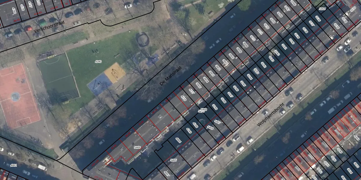 De Manstraat 50 is gelegen op kadastraal perceel CLS00E4118. Deze kadastrale aanduiding is uniek en wordt gebruikt door het Kadaster om eigendomsrechten en andere zakelijke rechten vast te leggen. Het perceel maakt onderdeel uit van de kadastrale gemeente Charlois.