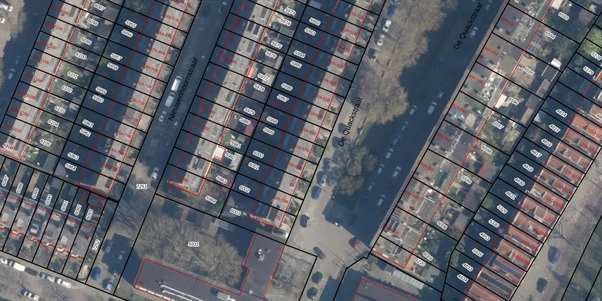 Het perceel waarop De Quackstraat 67-A staat heeft een oppervlakte van 142 m². Dit is een middelgroot perceel. De perceeloppervlakte wordt geregistreerd door het Kadaster. Gedetailleerde informatie over de maten van dit perceel kunt u vinden in het rapport Kadastrale kaart met maatvoering van De Quackstraat 67-A.