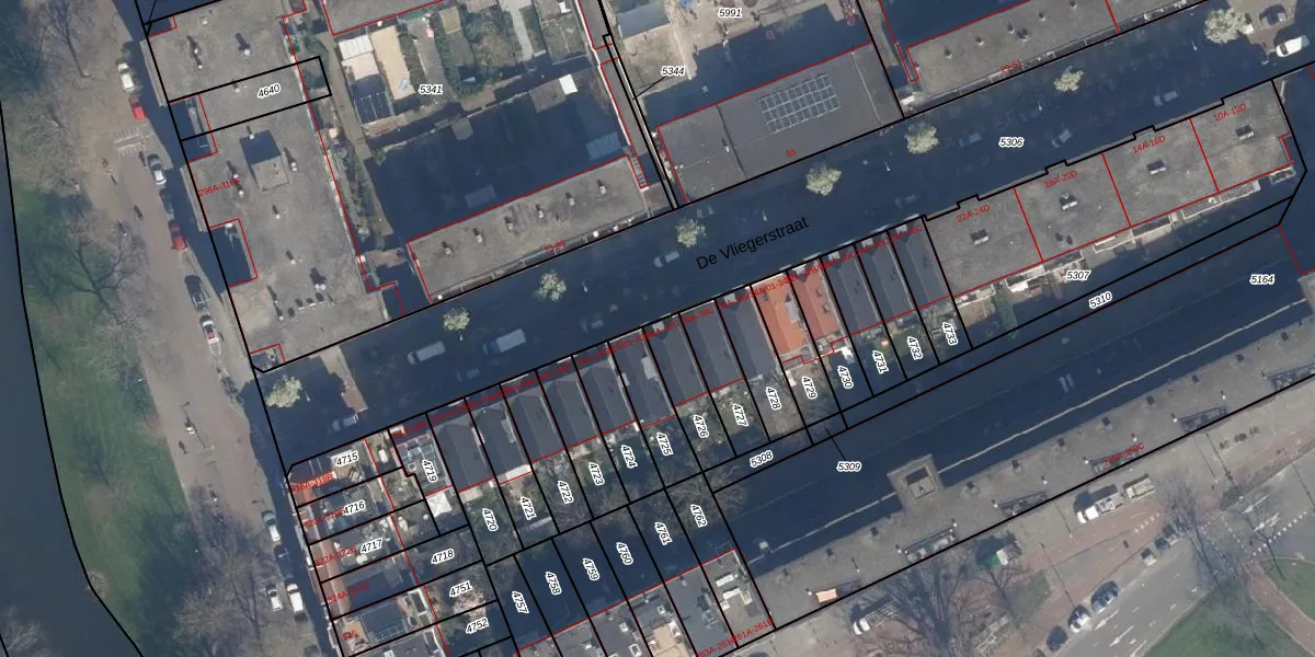 De Vliegerstraat 40-C is gelegen op kadastraal perceel DHV00C4726. Deze kadastrale aanduiding is uniek en wordt gebruikt door het Kadaster om eigendomsrechten en andere zakelijke rechten vast te leggen. Het perceel maakt onderdeel uit van de kadastrale gemeente Delfshaven.