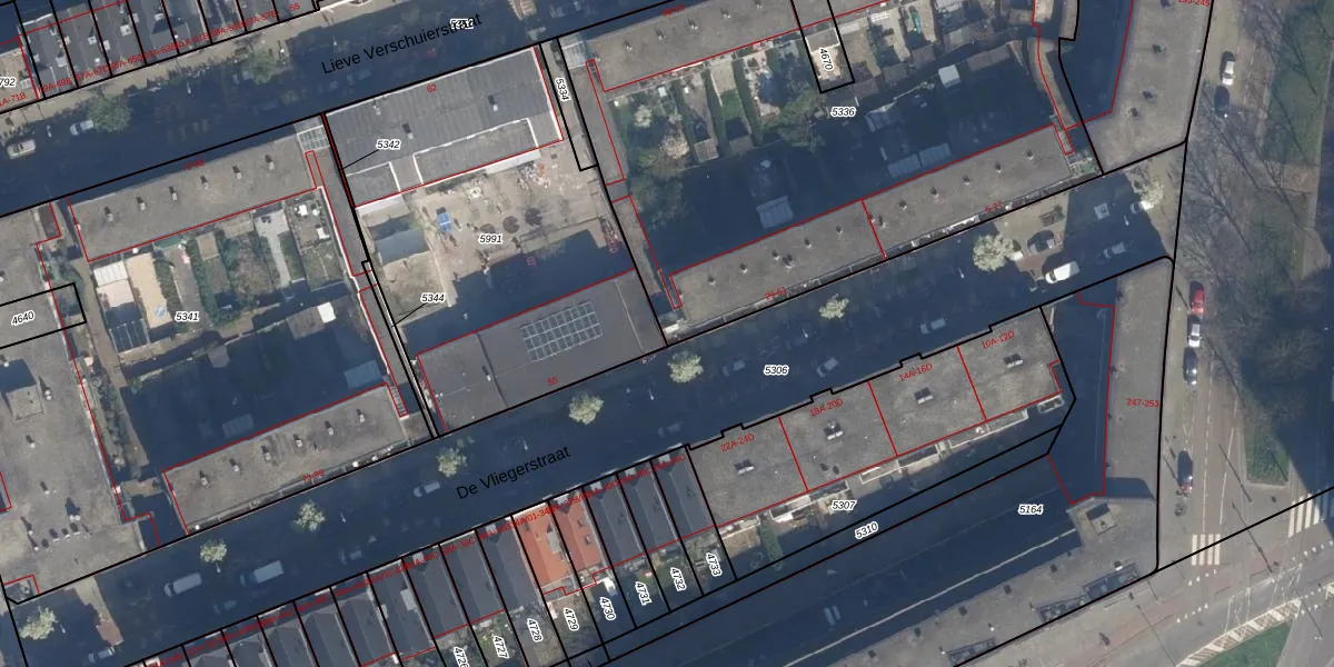 De Vliegerstraat 49 is gelegen op kadastraal perceel DHV00C5336. Deze kadastrale aanduiding is uniek en wordt gebruikt door het Kadaster om eigendomsrechten en andere zakelijke rechten vast te leggen. Het perceel maakt onderdeel uit van de kadastrale gemeente Delfshaven.