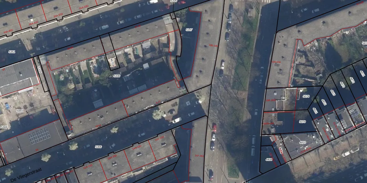 De Vliegerstraat 7 is gelegen op kadastraal perceel DHV00C5336. Deze kadastrale aanduiding is uniek en wordt gebruikt door het Kadaster om eigendomsrechten en andere zakelijke rechten vast te leggen. Het perceel maakt onderdeel uit van de kadastrale gemeente Delfshaven.