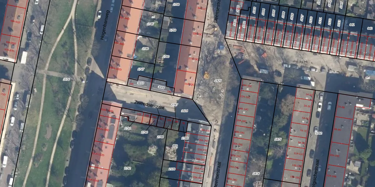 Het perceel waarop Deensestraat 23-B staat heeft een oppervlakte van 568 m². Dit is een groot perceel. De perceeloppervlakte wordt geregistreerd door het Kadaster. Gedetailleerde informatie over de maten van dit perceel kunt u vinden in het rapport Kadastrale kaart met maatvoering van Deensestraat 23-B.