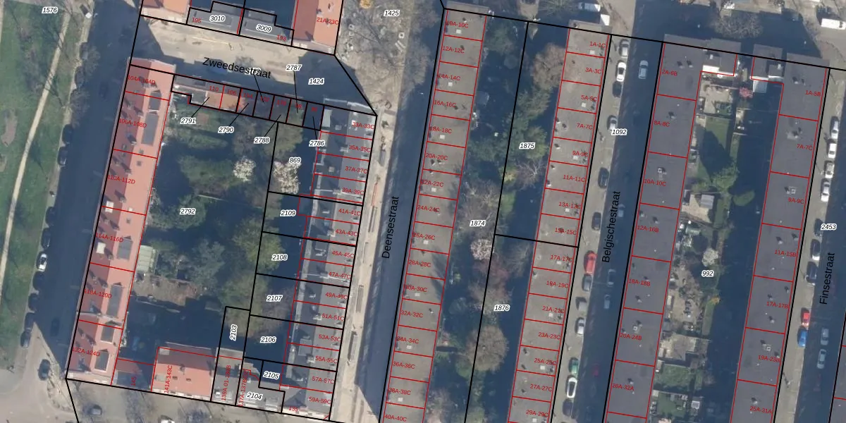 Het perceel waarop Deensestraat 24-C staat heeft een oppervlakte van 2015 m². Dit is een zeer groot perceel. De perceeloppervlakte wordt geregistreerd door het Kadaster. Gedetailleerde informatie over de maten van dit perceel kunt u vinden in het rapport Kadastrale kaart met maatvoering van Deensestraat 24-C.
