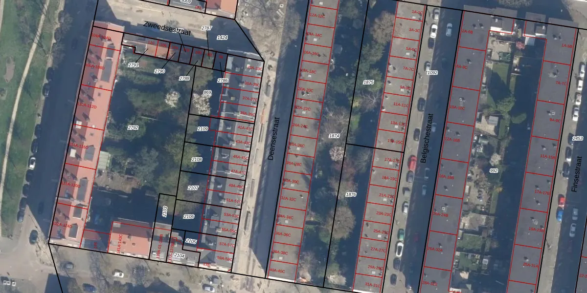 Het perceel waarop Deensestraat 26-B staat heeft een oppervlakte van 2015 m². Dit is een zeer groot perceel. De perceeloppervlakte wordt geregistreerd door het Kadaster. Gedetailleerde informatie over de maten van dit perceel kunt u vinden in het rapport Kadastrale kaart met maatvoering van Deensestraat 26-B.
