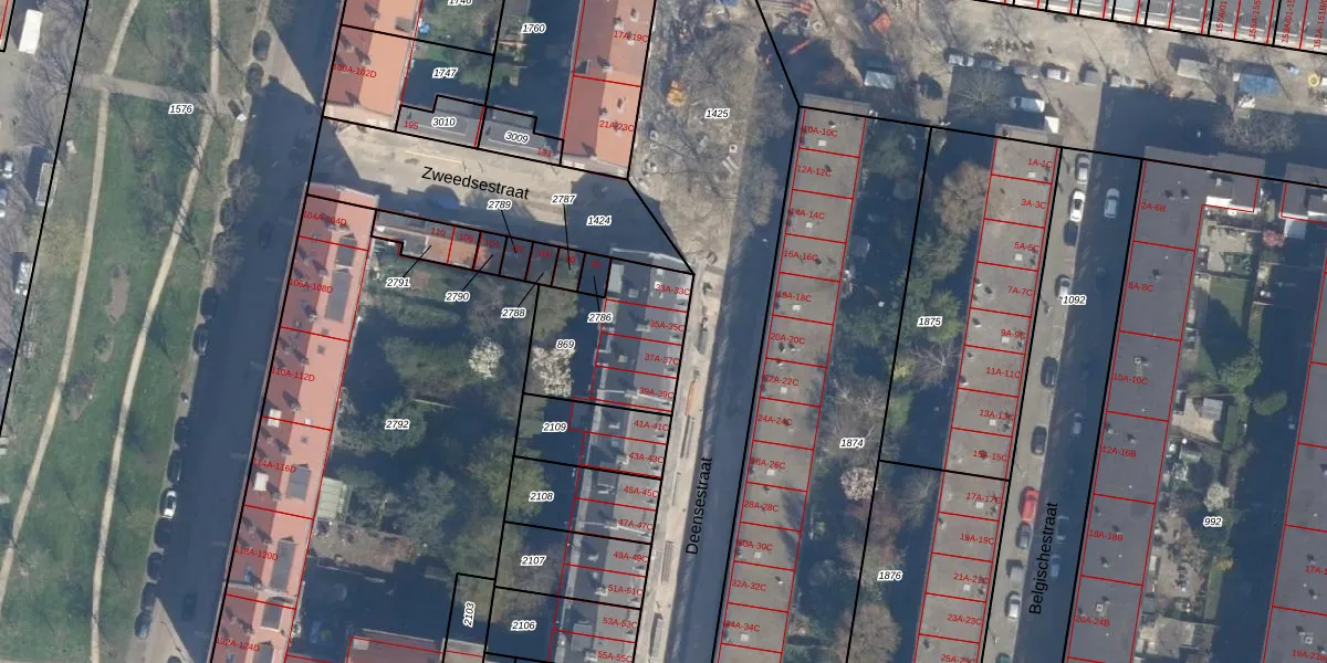 Het perceel waarop Deensestraat 35-A staat heeft een oppervlakte van 424 m². Dit is een groot perceel. De perceeloppervlakte wordt geregistreerd door het Kadaster. Gedetailleerde informatie over de maten van dit perceel kunt u vinden in het rapport Kadastrale kaart met maatvoering van Deensestraat 35-A.