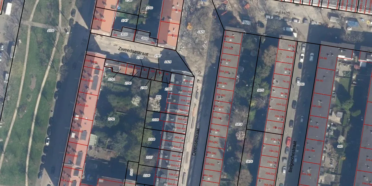 Het perceel waarop Deensestraat 35-C staat heeft een oppervlakte van 424 m². Dit is een groot perceel. De perceeloppervlakte wordt geregistreerd door het Kadaster. Gedetailleerde informatie over de maten van dit perceel kunt u vinden in het rapport Kadastrale kaart met maatvoering van Deensestraat 35-C.