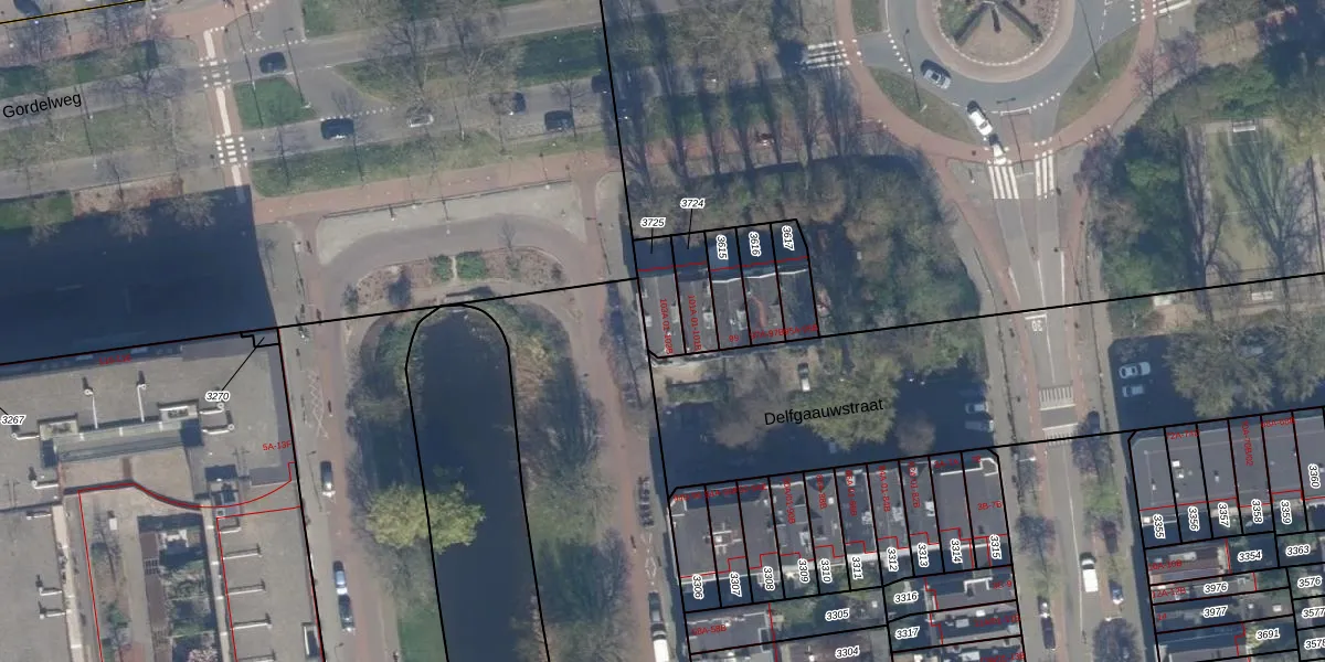 Delfgaauwstraat 103-A-02 is gelegen op kadastraal perceel RTD09Y3725. Deze kadastrale aanduiding is uniek en wordt gebruikt door het Kadaster om eigendomsrechten en andere zakelijke rechten vast te leggen. Het perceel maakt onderdeel uit van de kadastrale gemeente Rotterdam.