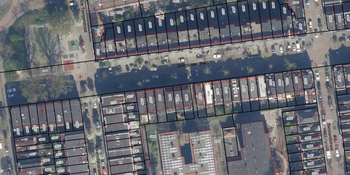 Het perceel waarop Delfgaauwstraat 44-E staat heeft een oppervlakte van 95 m². Dit is een klein perceel. De perceeloppervlakte wordt geregistreerd door het Kadaster. Gedetailleerde informatie over de maten van dit perceel kunt u vinden in het rapport Kadastrale kaart met maatvoering van Delfgaauwstraat 44-E.