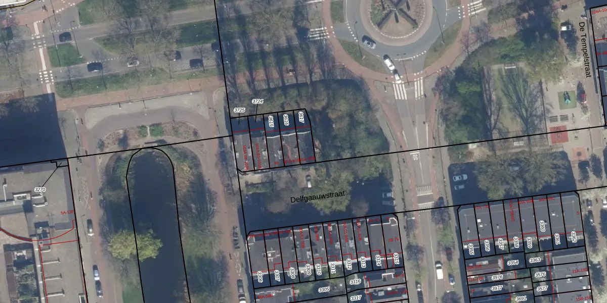 Het perceel waarop Delfgaauwstraat 95-B staat heeft een oppervlakte van 89 m². Dit is een klein perceel. De perceeloppervlakte wordt geregistreerd door het Kadaster. Gedetailleerde informatie over de maten van dit perceel kunt u vinden in het rapport Kadastrale kaart met maatvoering van Delfgaauwstraat 95-B.
