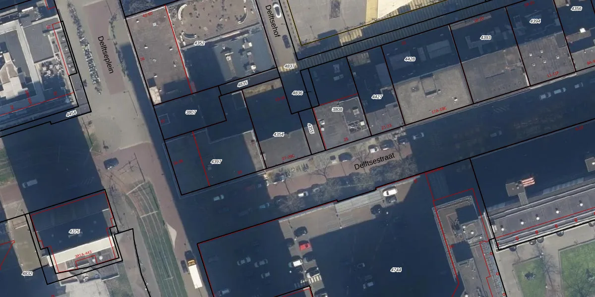 Het perceel waarop Delftsehof 13 staat heeft een oppervlakte van 413 m². Dit is een groot perceel. De perceeloppervlakte wordt geregistreerd door het Kadaster. Gedetailleerde informatie over de maten van dit perceel kunt u vinden in het rapport Kadastrale kaart met maatvoering van Delftsehof 13.