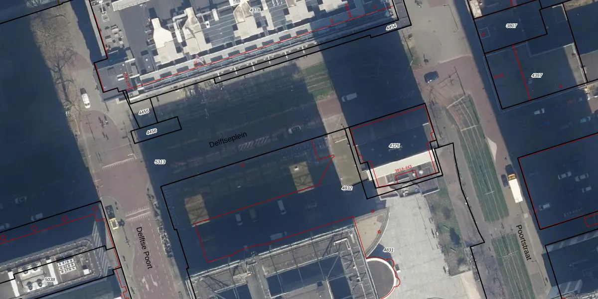 Het perceel waarop Delftseplein 45 staat heeft een oppervlakte van 7534 m². Dit is een zeer groot perceel. De perceeloppervlakte wordt geregistreerd door het Kadaster. Gedetailleerde informatie over de maten van dit perceel kunt u vinden in het rapport Kadastrale kaart met maatvoering van Delftseplein 45.
