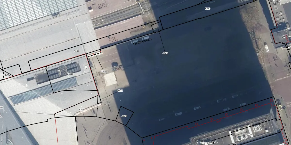Het perceel waarop Delftseplein 7-S staat heeft een oppervlakte van 1,9 ha. Dit is een zeer groot perceel. De perceeloppervlakte wordt geregistreerd door het Kadaster. Gedetailleerde informatie over de maten van dit perceel kunt u vinden in het rapport Kadastrale kaart met maatvoering van Delftseplein 7-S.