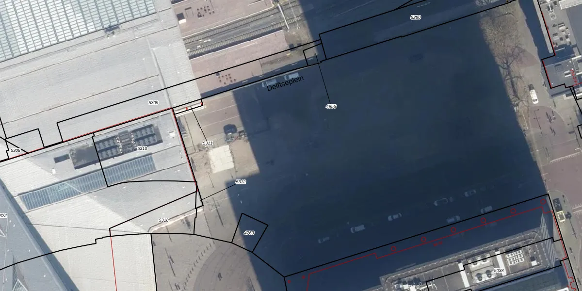 Het perceel waarop Delftseplein 8-G staat heeft een oppervlakte van 1,9 ha. Dit is een zeer groot perceel. De perceeloppervlakte wordt geregistreerd door het Kadaster. Gedetailleerde informatie over de maten van dit perceel kunt u vinden in het rapport Kadastrale kaart met maatvoering van Delftseplein 8-G.