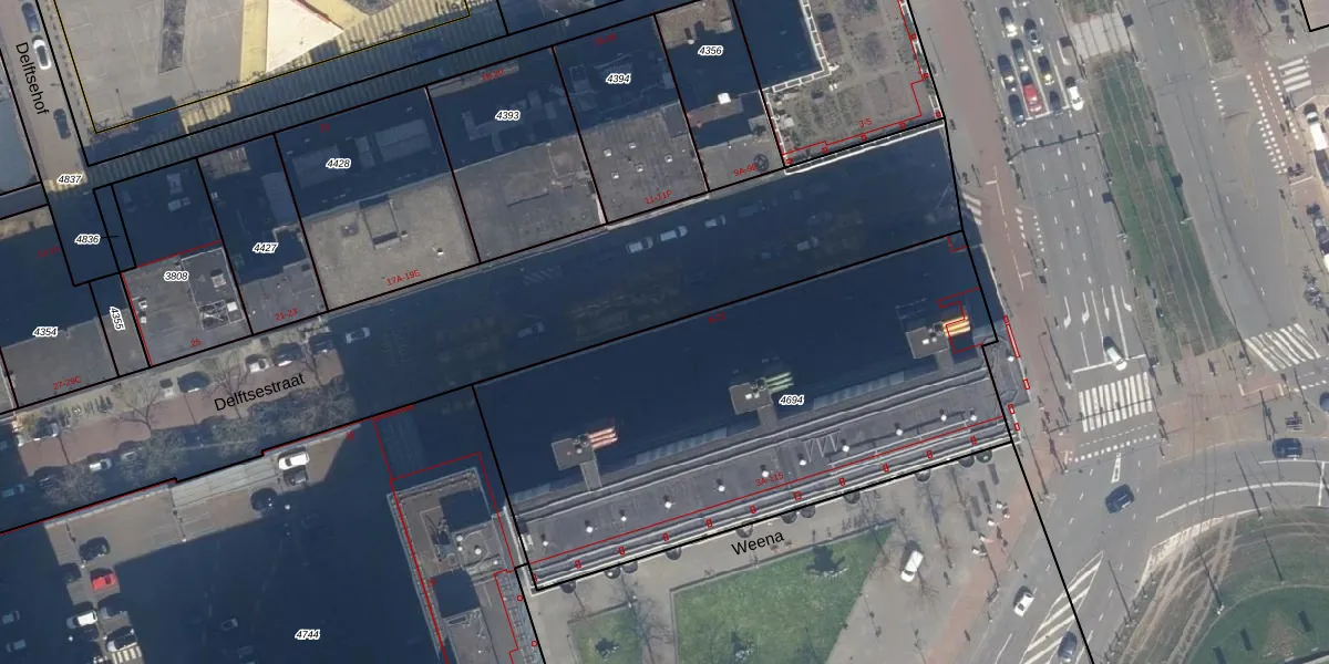 Delftsestraat 14 is gelegen op kadastraal perceel RTD06S4694. Deze kadastrale aanduiding is uniek en wordt gebruikt door het Kadaster om eigendomsrechten en andere zakelijke rechten vast te leggen. Het perceel maakt onderdeel uit van de kadastrale gemeente Rotterdam.