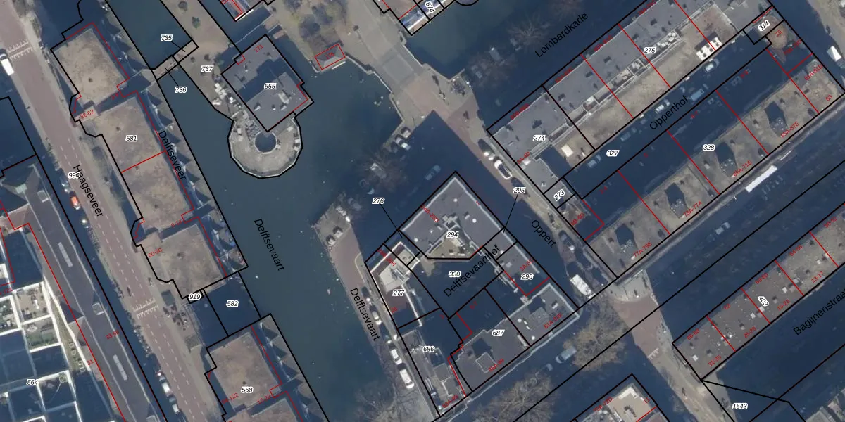 Het perceel waarop Delftsevaart 25-C staat heeft een oppervlakte van 297 m². Dit is een middelgroot perceel. De perceeloppervlakte wordt geregistreerd door het Kadaster. Gedetailleerde informatie over de maten van dit perceel kunt u vinden in het rapport Kadastrale kaart met maatvoering van Delftsevaart 25-C.