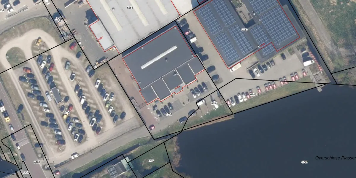 Delftweg 104-A is gelegen op kadastraal perceel OVS00B6738. Deze kadastrale aanduiding is uniek en wordt gebruikt door het Kadaster om eigendomsrechten en andere zakelijke rechten vast te leggen. Het perceel maakt onderdeel uit van de kadastrale gemeente Overschie.