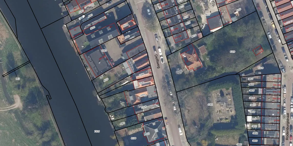 Delftweg 25 is gelegen op kadastraal perceel OVS00B2589. Deze kadastrale aanduiding is uniek en wordt gebruikt door het Kadaster om eigendomsrechten en andere zakelijke rechten vast te leggen. Het perceel maakt onderdeel uit van de kadastrale gemeente Overschie.