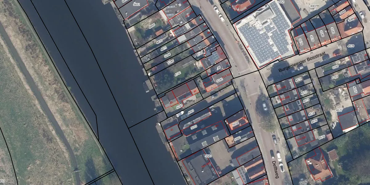 Delftweg 47 is gelegen op kadastraal perceel OVS00B5243. Deze kadastrale aanduiding is uniek en wordt gebruikt door het Kadaster om eigendomsrechten en andere zakelijke rechten vast te leggen. Het perceel maakt onderdeel uit van de kadastrale gemeente Overschie.