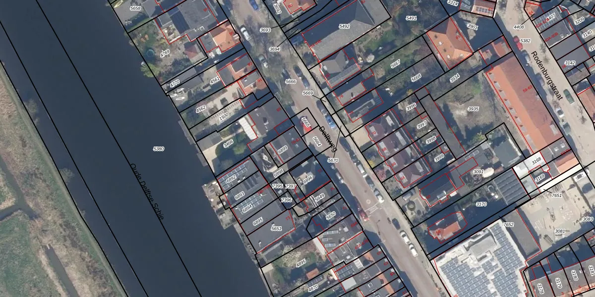 Delftweg 81 is gelegen op kadastraal perceel OVS00B6899. Deze kadastrale aanduiding is uniek en wordt gebruikt door het Kadaster om eigendomsrechten en andere zakelijke rechten vast te leggen. Het perceel maakt onderdeel uit van de kadastrale gemeente Overschie.