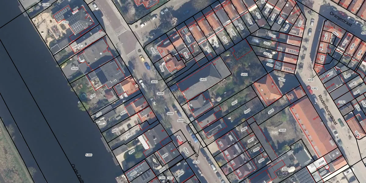 Delftweg 84 is gelegen op kadastraal perceel OVS00B5492. Deze kadastrale aanduiding is uniek en wordt gebruikt door het Kadaster om eigendomsrechten en andere zakelijke rechten vast te leggen. Het perceel maakt onderdeel uit van de kadastrale gemeente Overschie.
