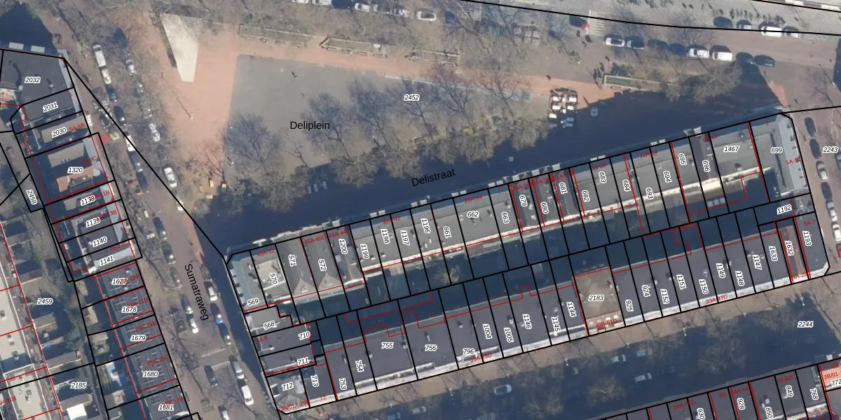 Delistraat 36-B is gelegen op kadastraal perceel RTD05P1196. Deze kadastrale aanduiding is uniek en wordt gebruikt door het Kadaster om eigendomsrechten en andere zakelijke rechten vast te leggen. Het perceel maakt onderdeel uit van de kadastrale gemeente Rotterdam.
