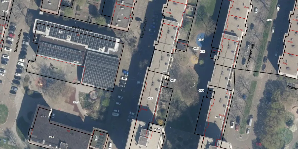 Het perceel waarop Dempostraat 116 staat heeft een oppervlakte van 1190 m². Dit is een zeer groot perceel. De perceeloppervlakte wordt geregistreerd door het Kadaster. Gedetailleerde informatie over de maten van dit perceel kunt u vinden in het rapport Kadastrale kaart met maatvoering van Dempostraat 116.