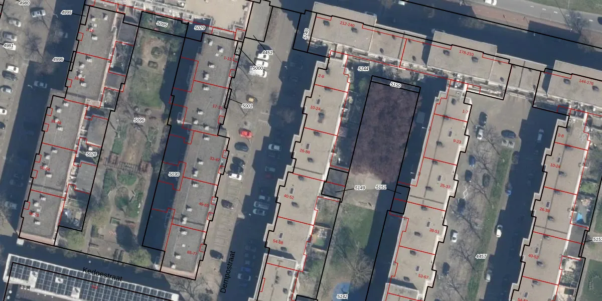 Het perceel waarop Dempostraat 36 staat heeft een oppervlakte van 4115 m². Dit is een zeer groot perceel. De perceeloppervlakte wordt geregistreerd door het Kadaster. Gedetailleerde informatie over de maten van dit perceel kunt u vinden in het rapport Kadastrale kaart met maatvoering van Dempostraat 36.