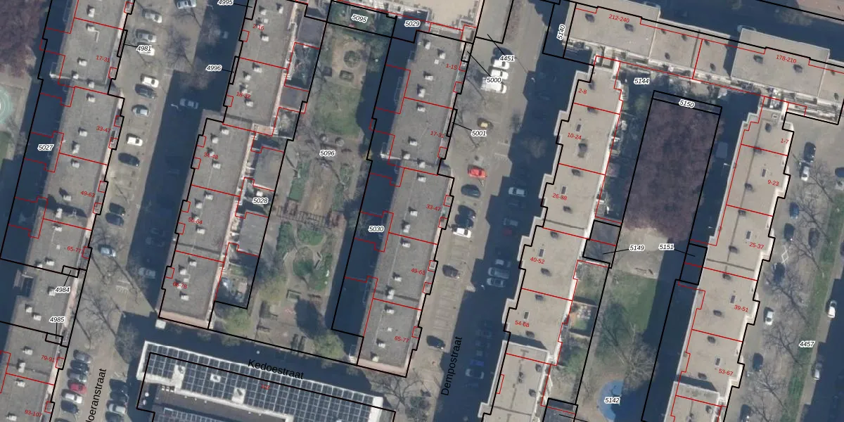 Dempostraat 37 is gelegen op kadastraal perceel DHV00H5030. Deze kadastrale aanduiding is uniek en wordt gebruikt door het Kadaster om eigendomsrechten en andere zakelijke rechten vast te leggen. Het perceel maakt onderdeel uit van de kadastrale gemeente Delfshaven.
