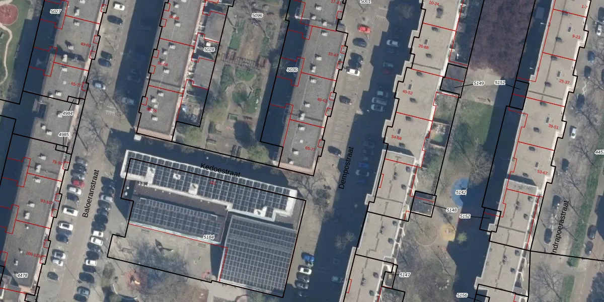 Het perceel waarop Dempostraat 69 staat heeft een oppervlakte van 1500 m². Dit is een zeer groot perceel. De perceeloppervlakte wordt geregistreerd door het Kadaster. Gedetailleerde informatie over de maten van dit perceel kunt u vinden in het rapport Kadastrale kaart met maatvoering van Dempostraat 69.