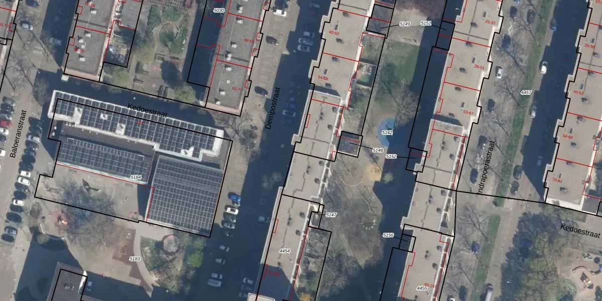 Het perceel waarop Dempostraat 74 staat heeft een oppervlakte van 4115 m². Dit is een zeer groot perceel. De perceeloppervlakte wordt geregistreerd door het Kadaster. Gedetailleerde informatie over de maten van dit perceel kunt u vinden in het rapport Kadastrale kaart met maatvoering van Dempostraat 74.