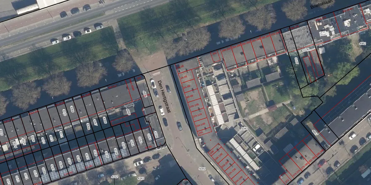 Het perceel waarop het adres ligt is CLS00-E-5040. De afkorting 'CLS00' staat voor kadastrale gemeente Charlois. Het perceel is met 4890 m² relatief groot. Het gemiddelde ligt in de kadastrale gemeente Charlois op 1147,69 m². Het kleinste perceel in de kadastrale gemeente is 0 m² groot. De grootste perceeloppervlakte is 1,09 km². Op het perceel zijn 52 adressen aanwezig. In de Basisregistratie Kadaster (BRK) werden de grenzen van het perceel geregistreerd op 21-06-2007.